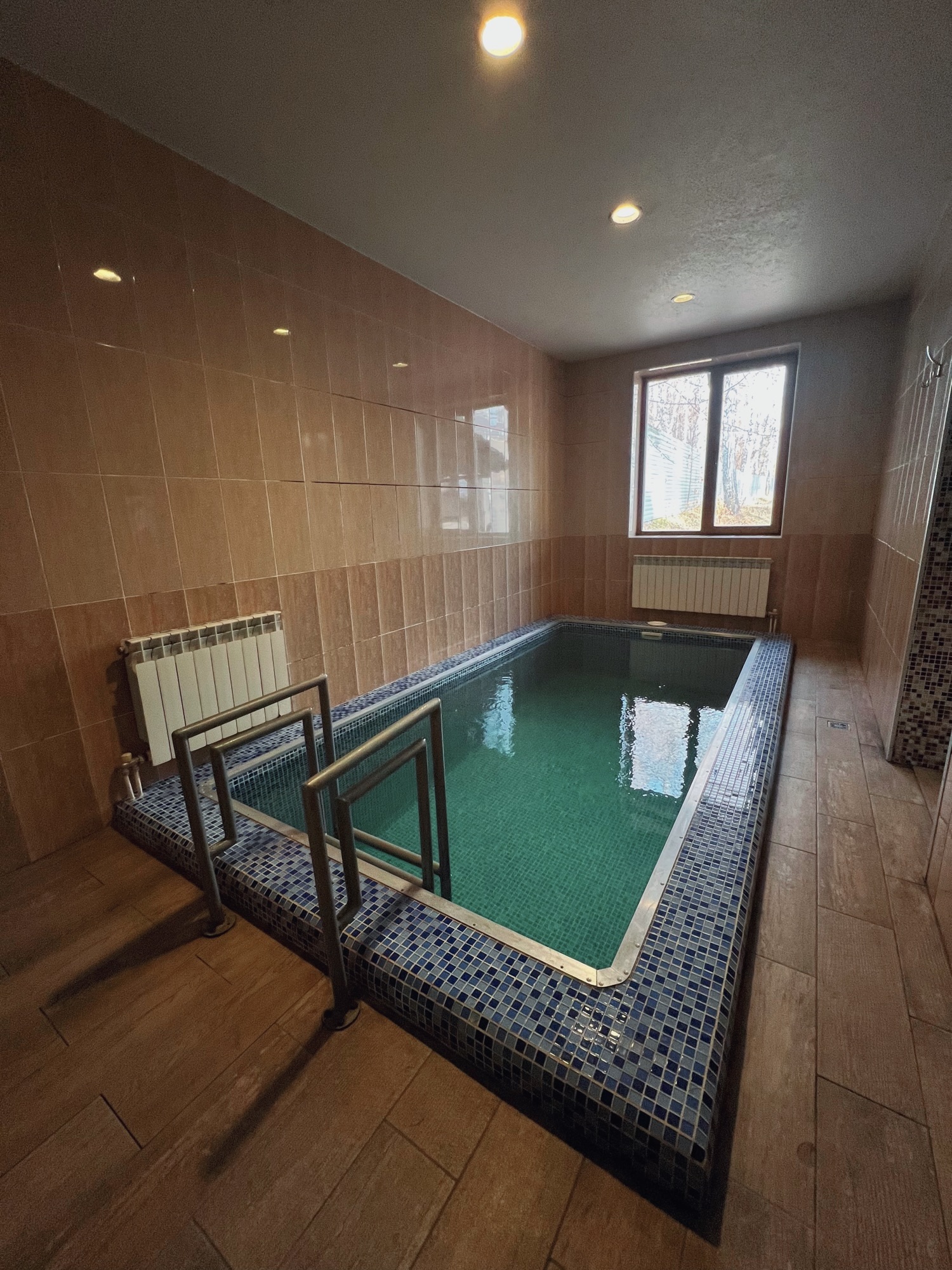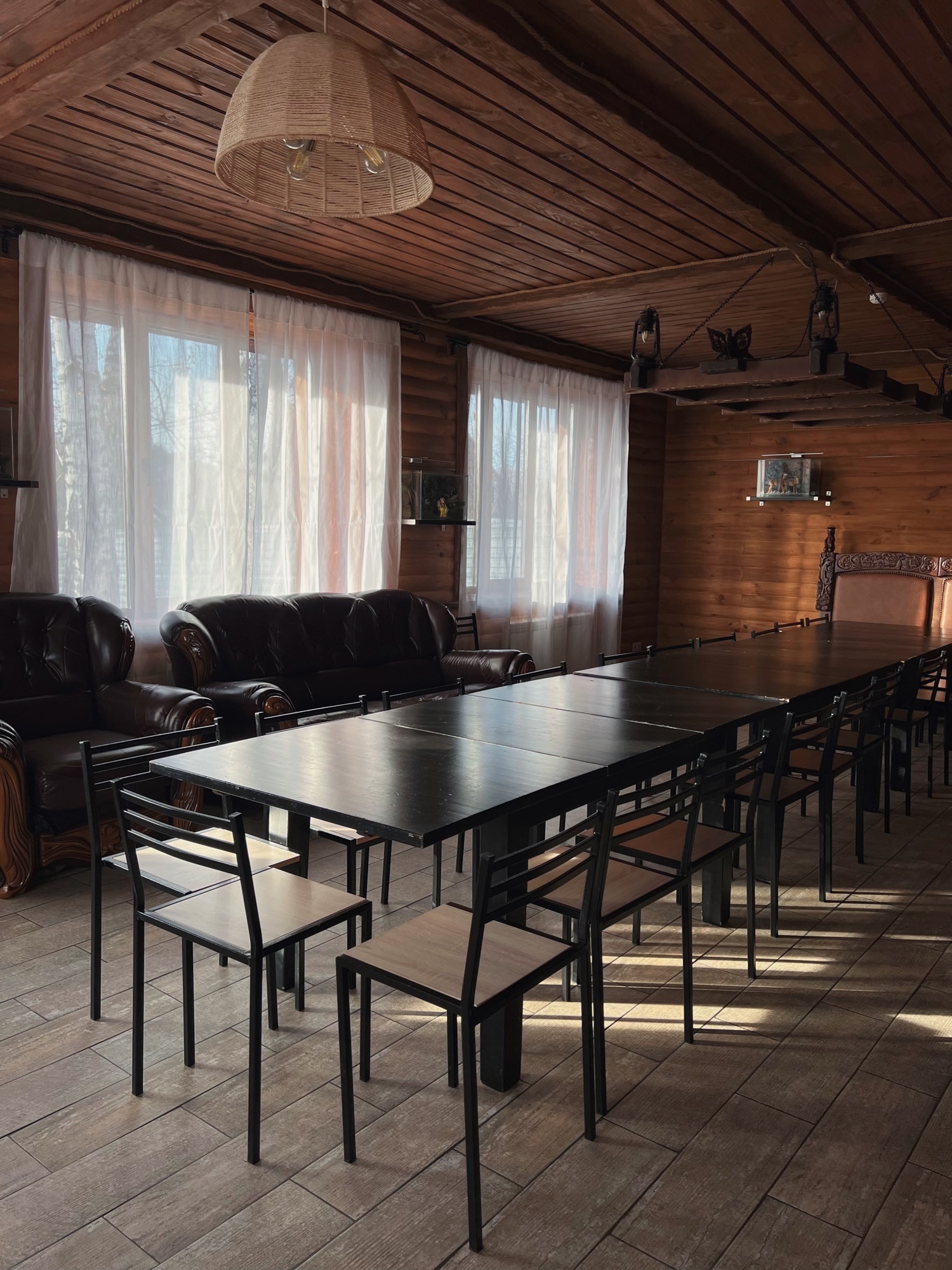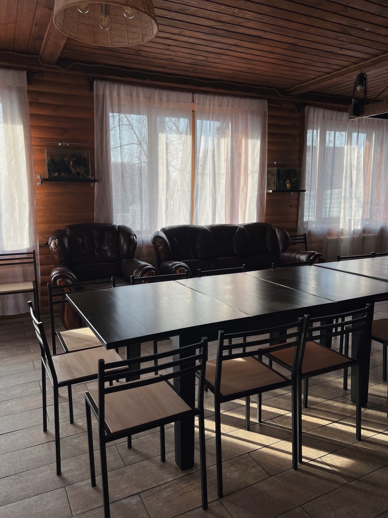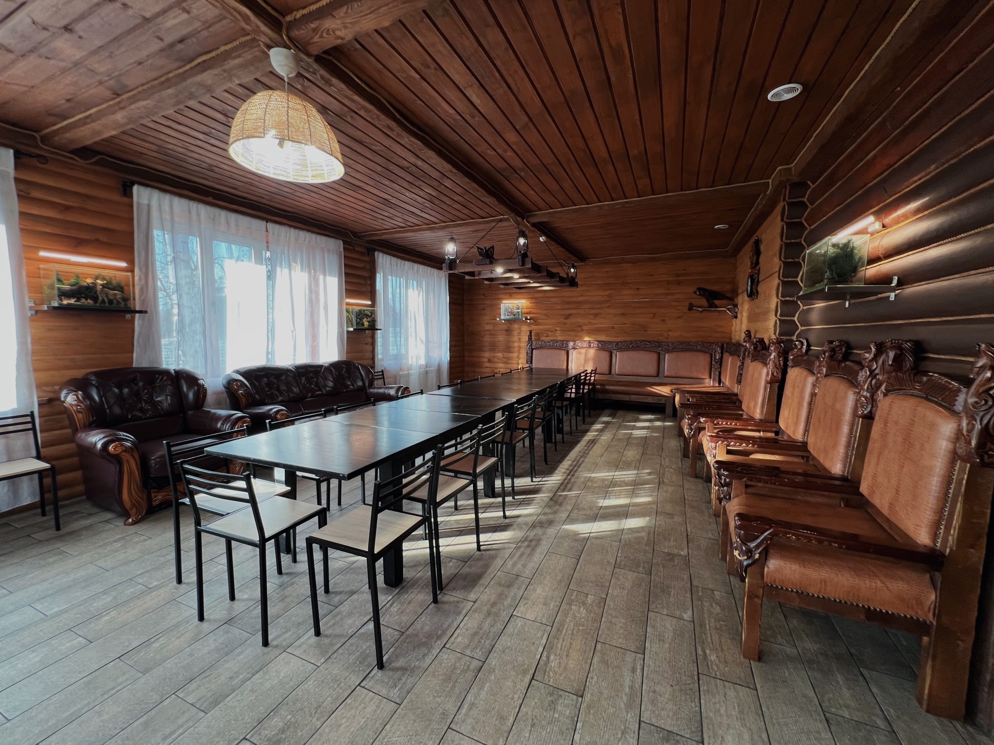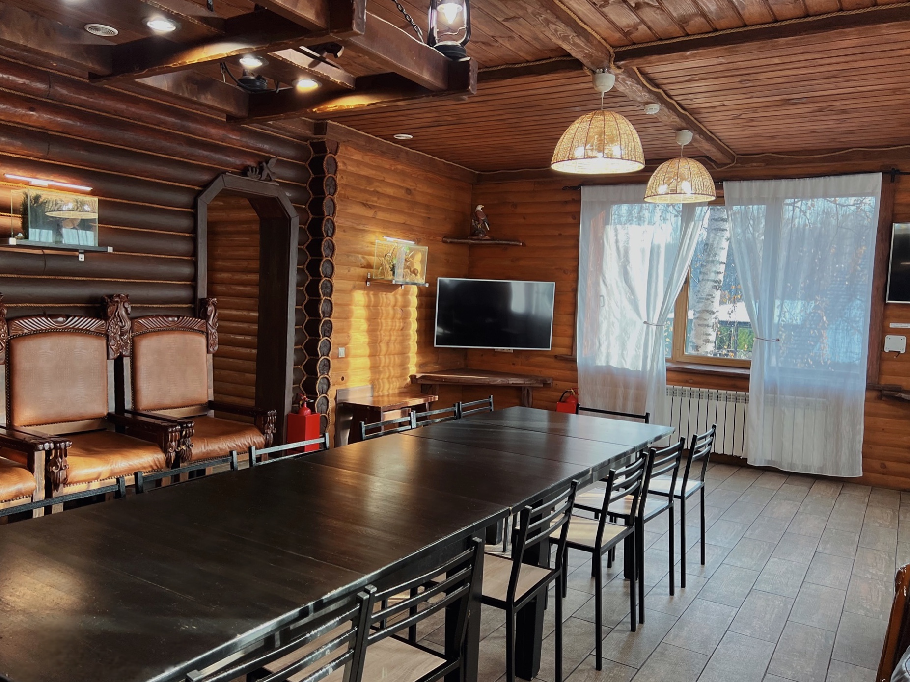 Вместимость коттеджа 19 спальных мест, общая вместимость до 30 человек. В коттедже располагается финская и турецкая парная, бассейн, большая гостиная, кухня, мангальная зона. Коттедж создан в охотничьем стиле, что создает для наших гостей особое настроение! Успей забронировать свою дату
